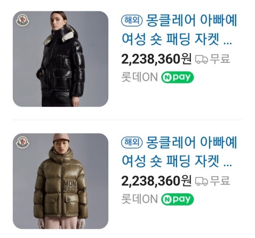 몽클레어 아바예 숏 다운 패딩 자켓 여성용(2컬러)