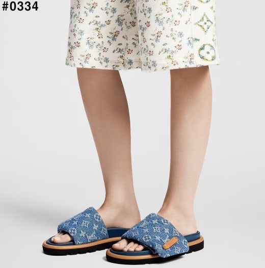 루이비통 풀 필로우 플랫 컴포트 뮬 슬리퍼 블루 여성용(1컬러)