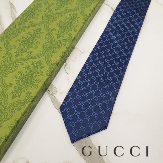 구찌 GG 패턴 실크 자카드 타이 블루네이비 남성용(1컬러) ⚓743