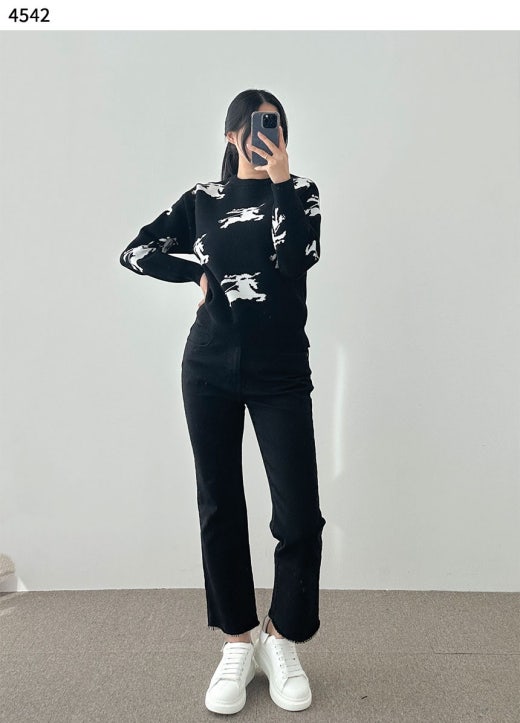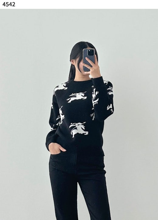 버버리 코튼 실크 자카드 스웨터 블랙 여성용(1컬러)