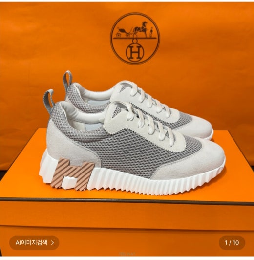 에르메스 AG 그래픽 메쉬 스웨이드 고트스킨 바운싱 스니커즈 베이지 여성용(1컬러)