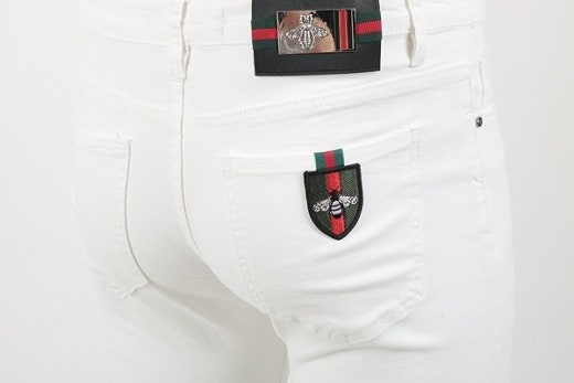 구찌 벌 방패패치 화이트 진 남성용(1컬러)