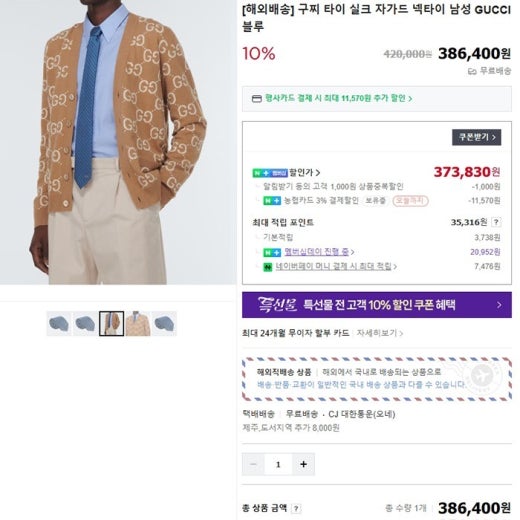 구찌 GG 패턴 실크 자카드 타이 라이트블루 남성용(1컬러) ⚓744