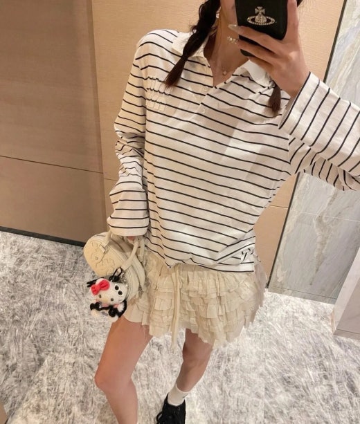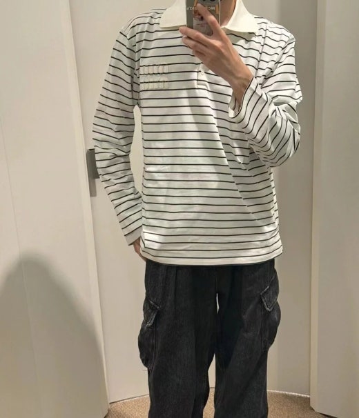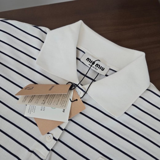 미우미우 스트라이프 폴로 티셔츠 남여공용(1컬러) 📢해외