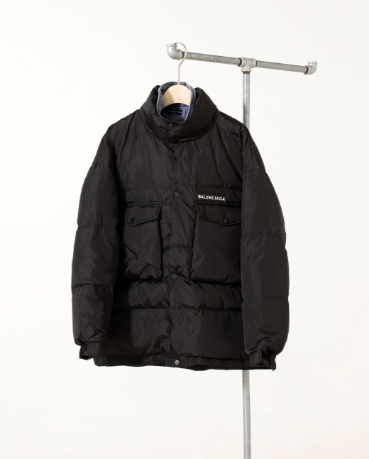 발렌시아가 백로고 데님 레이어드 패딩 블랙 남성용(1컬러)