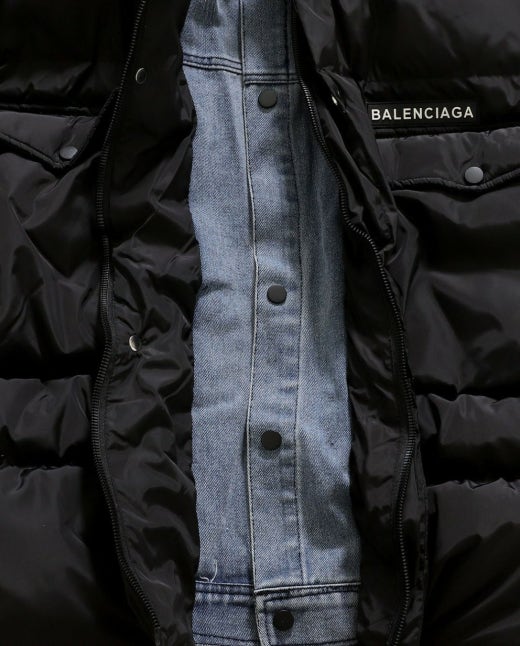 발렌시아가 백로고 데님 레이어드 패딩 블랙 남성용(1컬러)