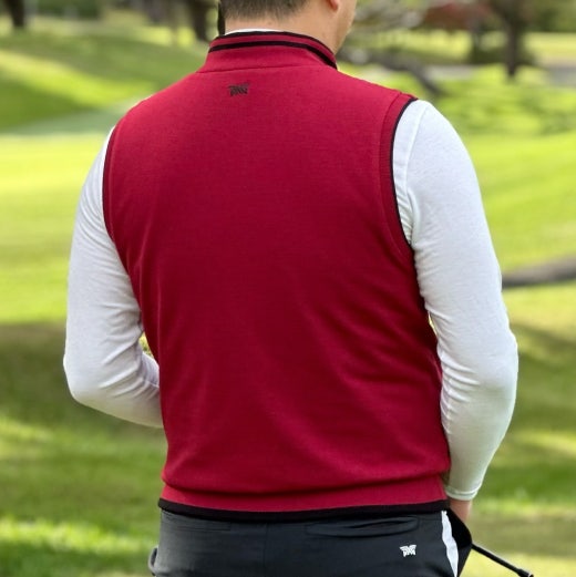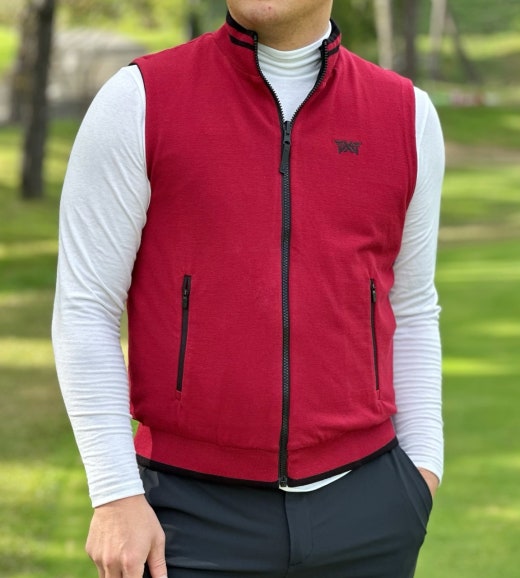 PXG 매.장.판 맨즈 풀 집업 리버시블 니트 베스트 블랙&버건디 남성용(1컬러)