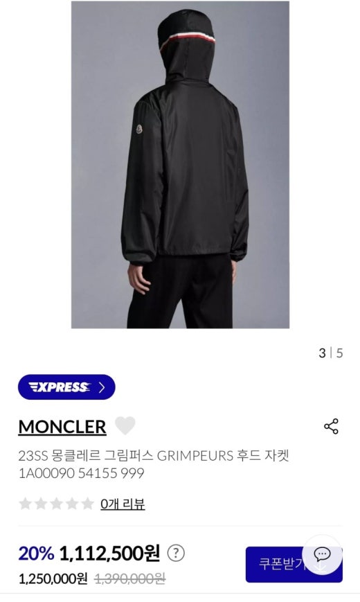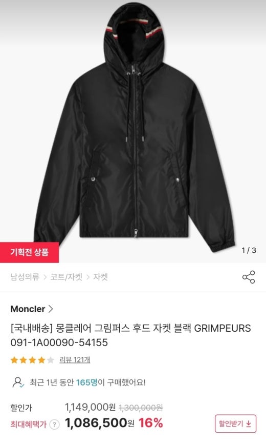 몽클레어 그림퍼스 바람막이 재킷 블랙 남성용(1컬러)