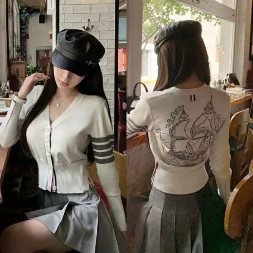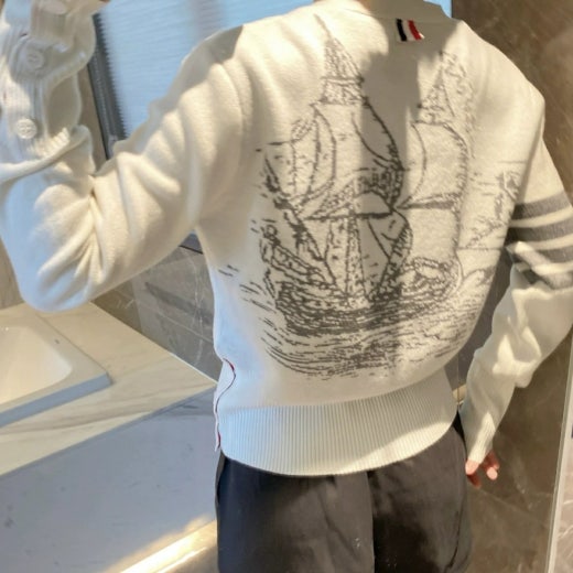 톰브라운 4선 요트빈티지 울 가디건 여성용(3컬러)