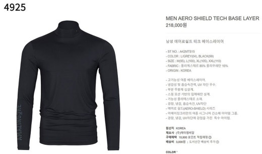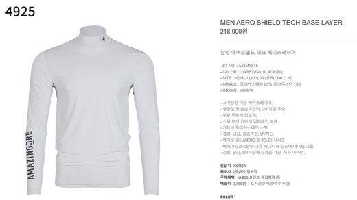 어메이징크리 에어로 쉴드 테크 베이스 기모레이어 남성용(2컬러)