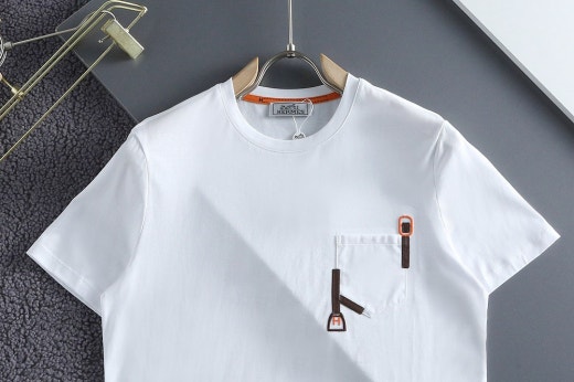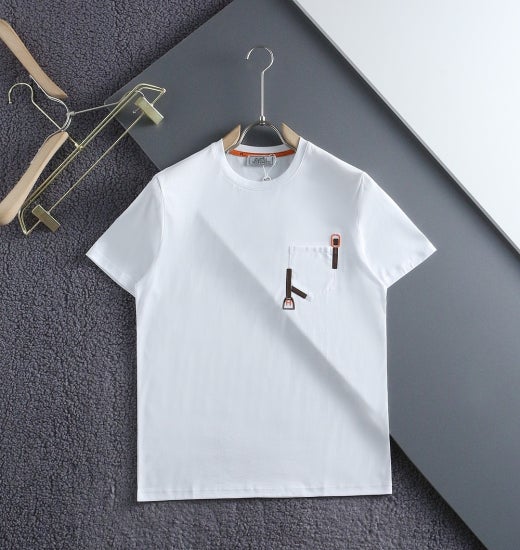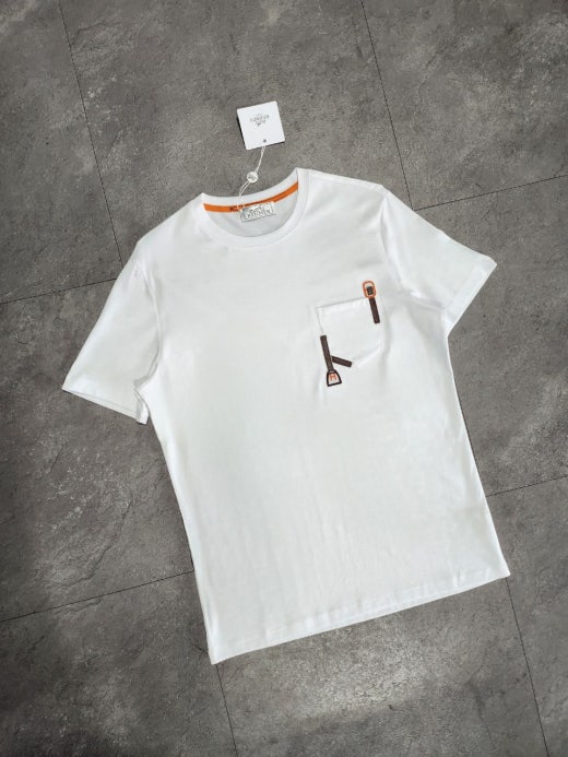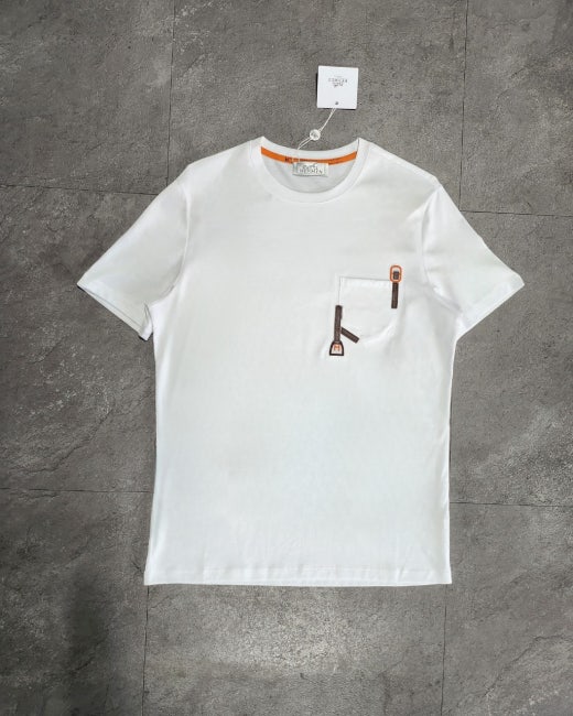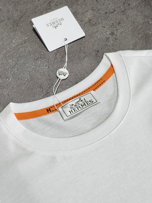 에르메스 포켓 자수 라운드 반팔티셔츠 화이트 남여공용(1컬러) 🅱️빅사이즈