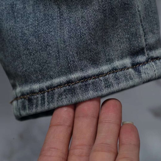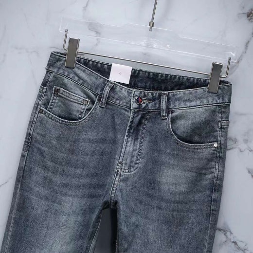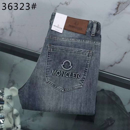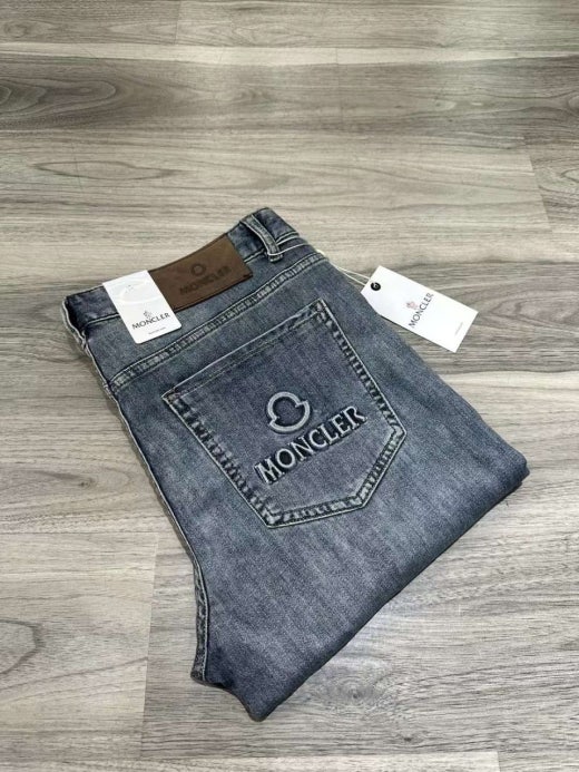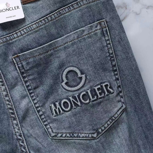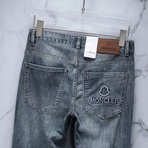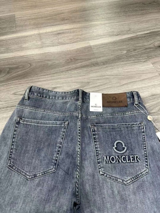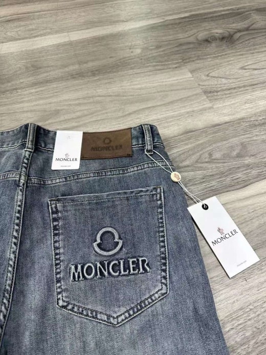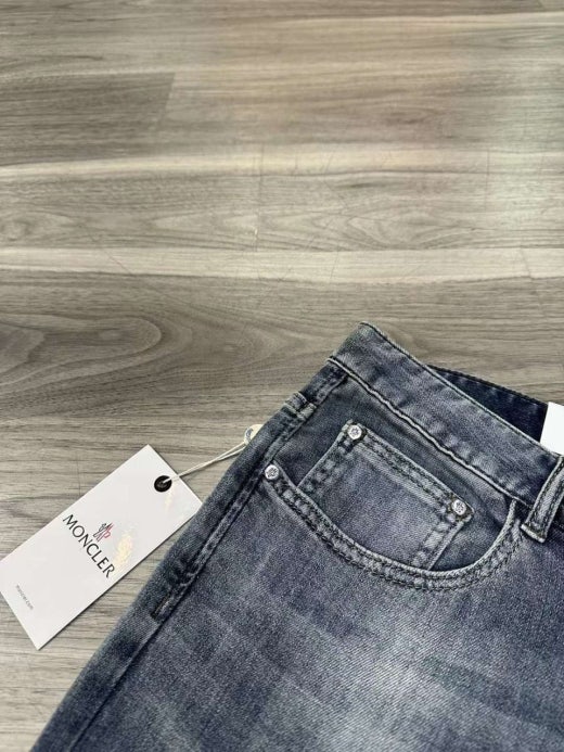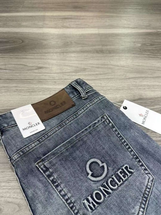 몽클레어 엠보로고 가죽패치 스판 데님진 연청 남성용(1컬러)
