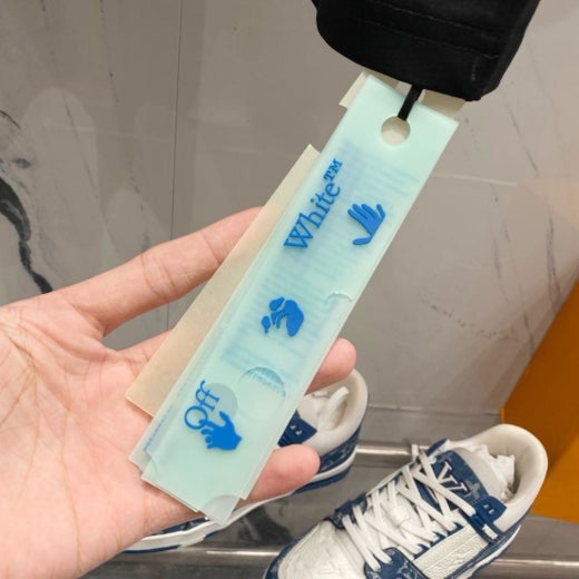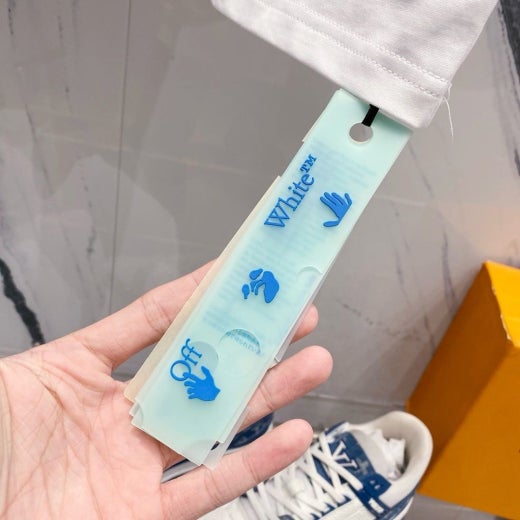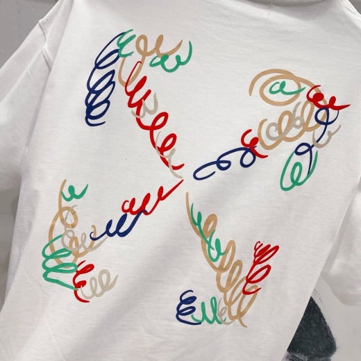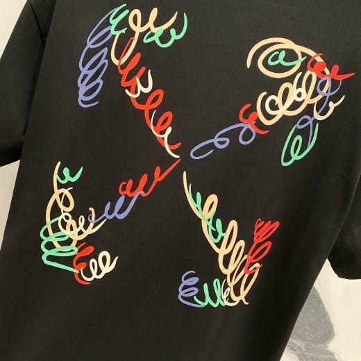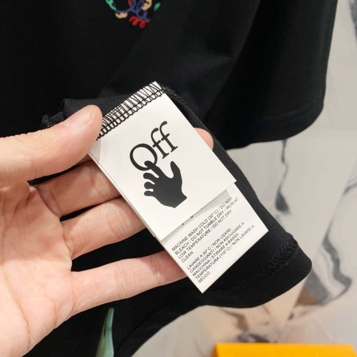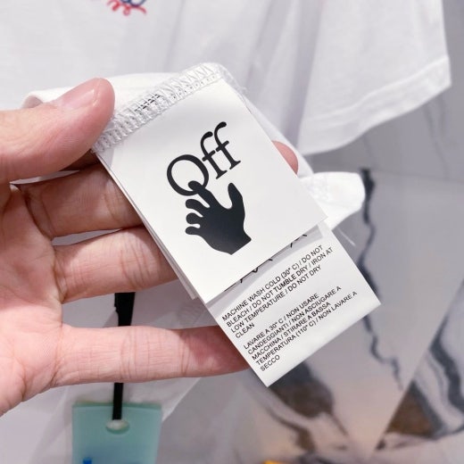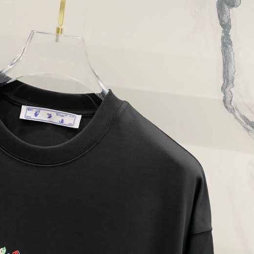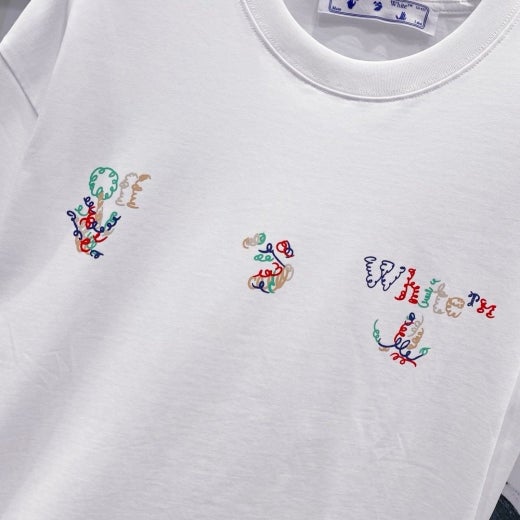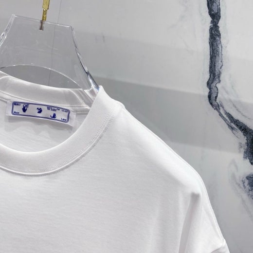 오프화이트 드로잉 레터링로고 시그니처 라운드 반팔 티셔츠 남성용(2컬러)