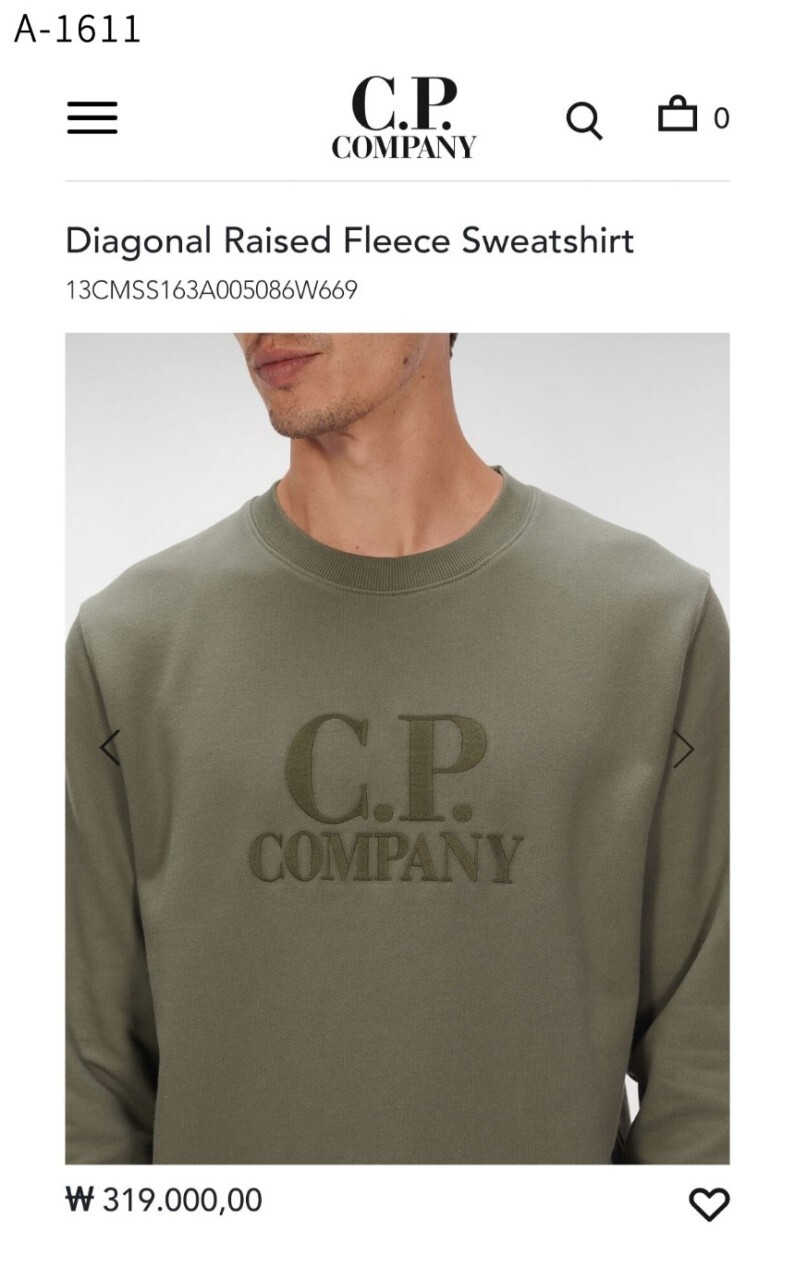 CP컴퍼니 Diagonal Raised 다이래그널 레이즈드 맨투맨 세트 남성용(2컬러)