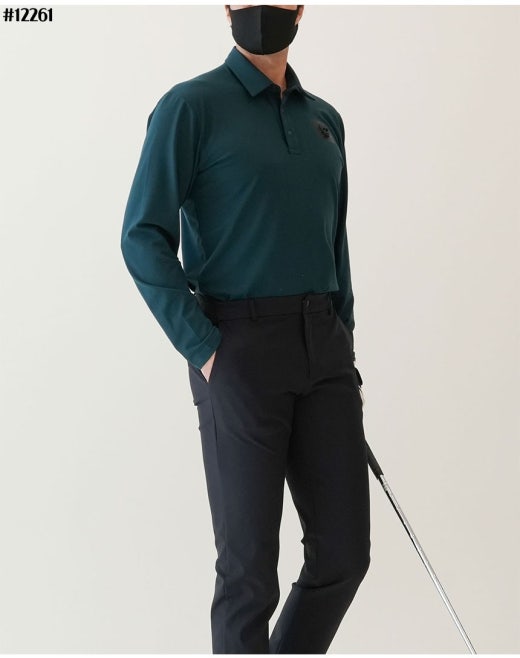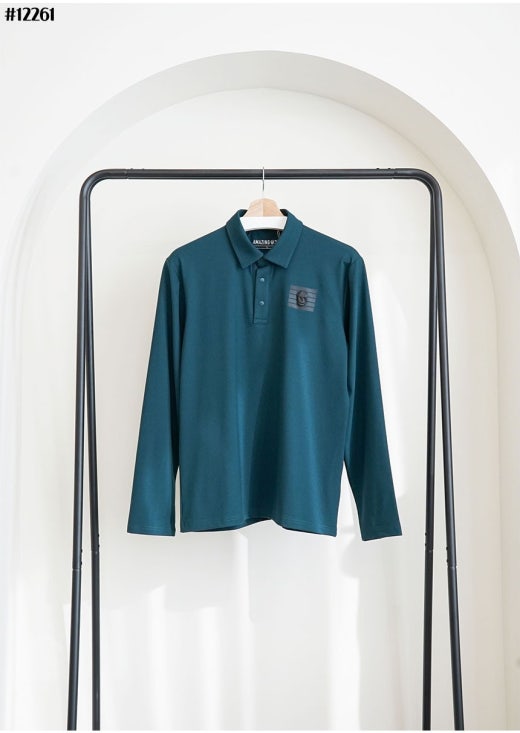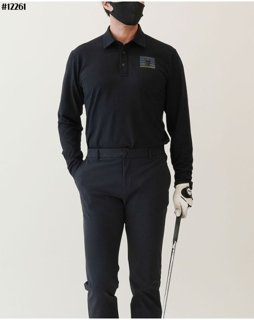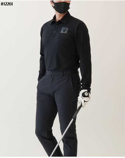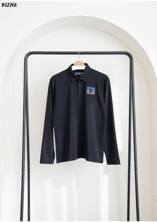 어메이징크리 에어로핏 블록 브러쉬 긴팔 카라 티셔츠 블랙 남성용(1컬러)