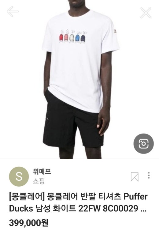 몽클레어 ducks퀼팅 실캣 반팔티셔츠 남성용(2컬러)