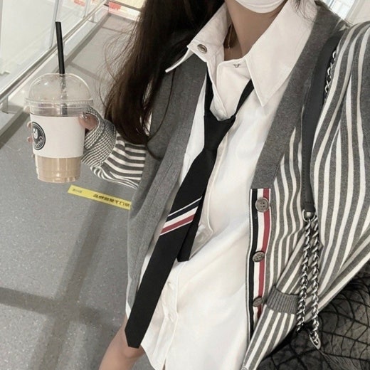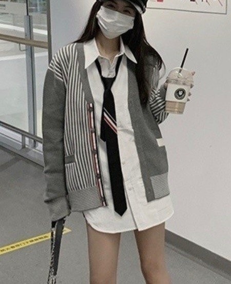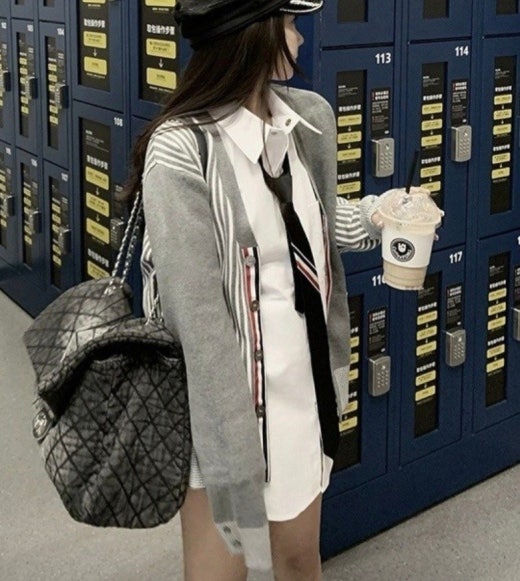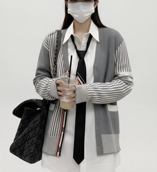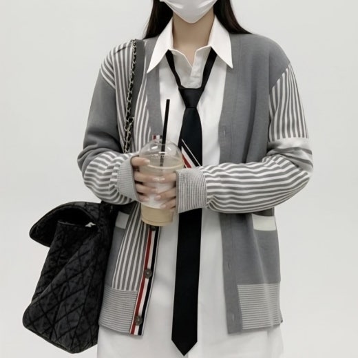 톰브라운 스트라이프 가디건 그레이 여성용(1컬러)