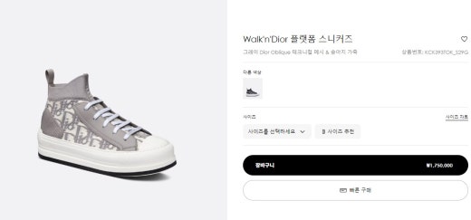디올 Walk'n' d*or 플랫폼 스니커즈 오블리크그레이 여성용(1컬러)