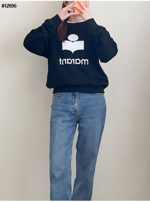 이자벨마랑 ETOILE 에뚜왈 벨벳로고 스웨트 맨투맨 티셔츠 남여공용(2컬러)