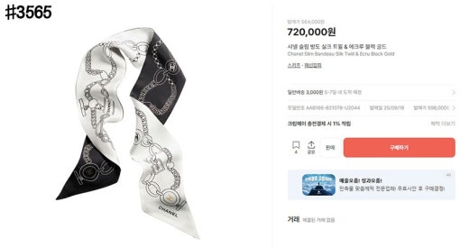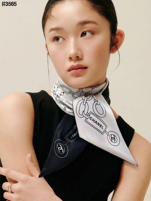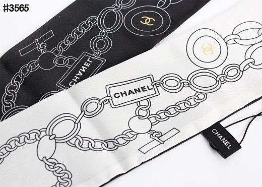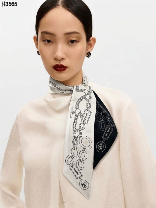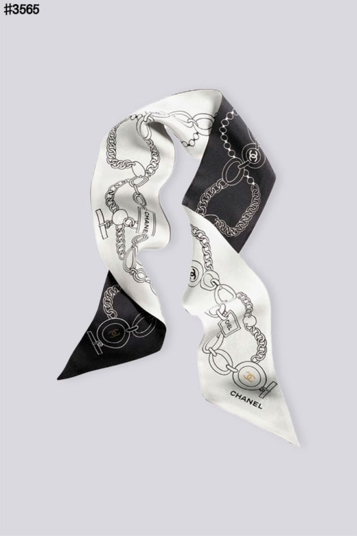 샤넬 슬림 방도 실크 트윌 스카프 블랙화이트 여성용(1컬러)