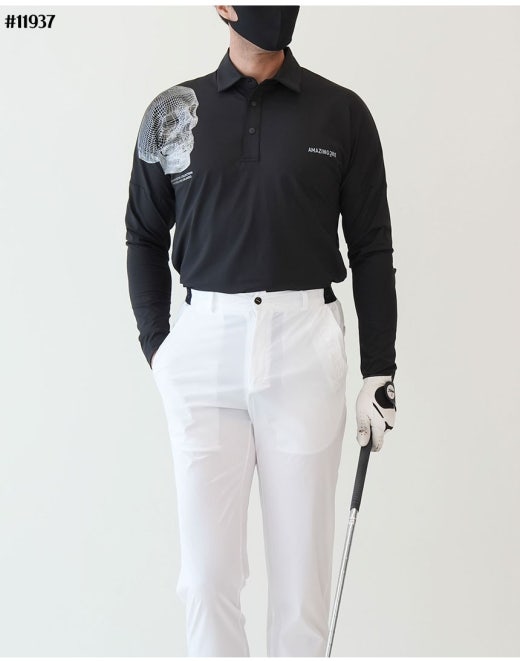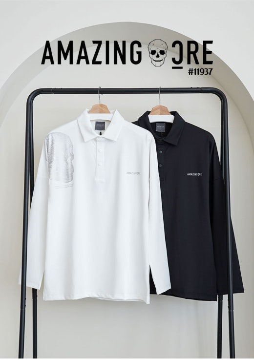 어메이징크리 에어로쉴드 스컬 긴팔 카라 티셔츠 남성용(2컬러)