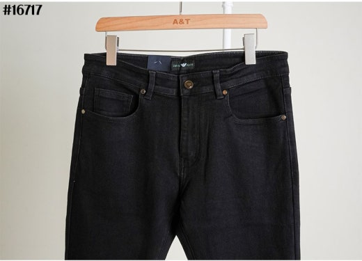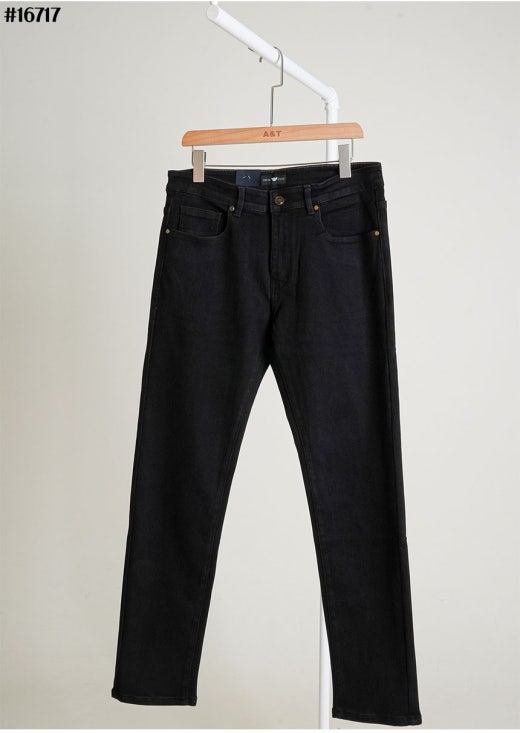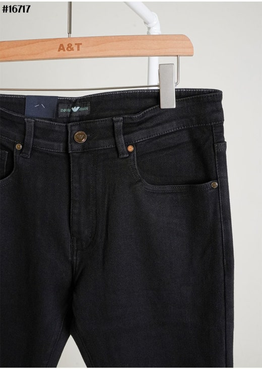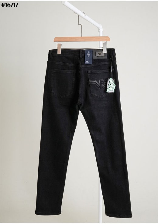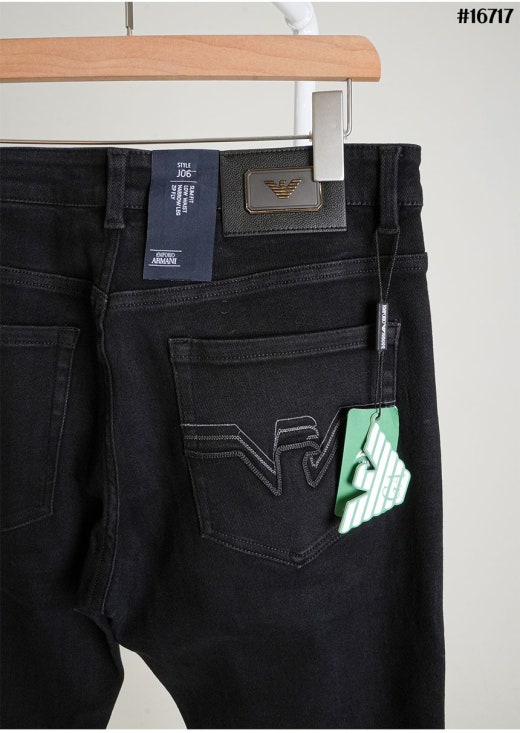 아르마니 스틸 이글 레더 패치 스트레이트 블랙 데님 팬츠 블랙 남성용(1컬러)