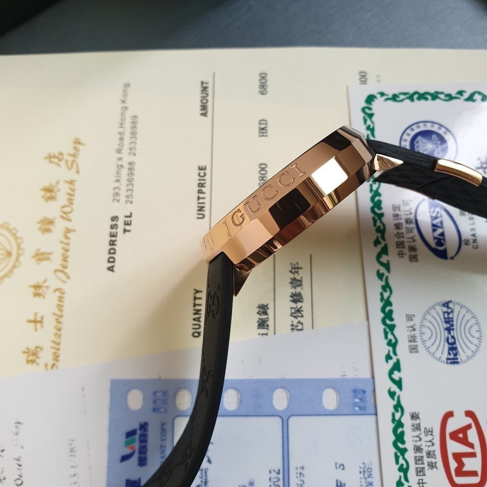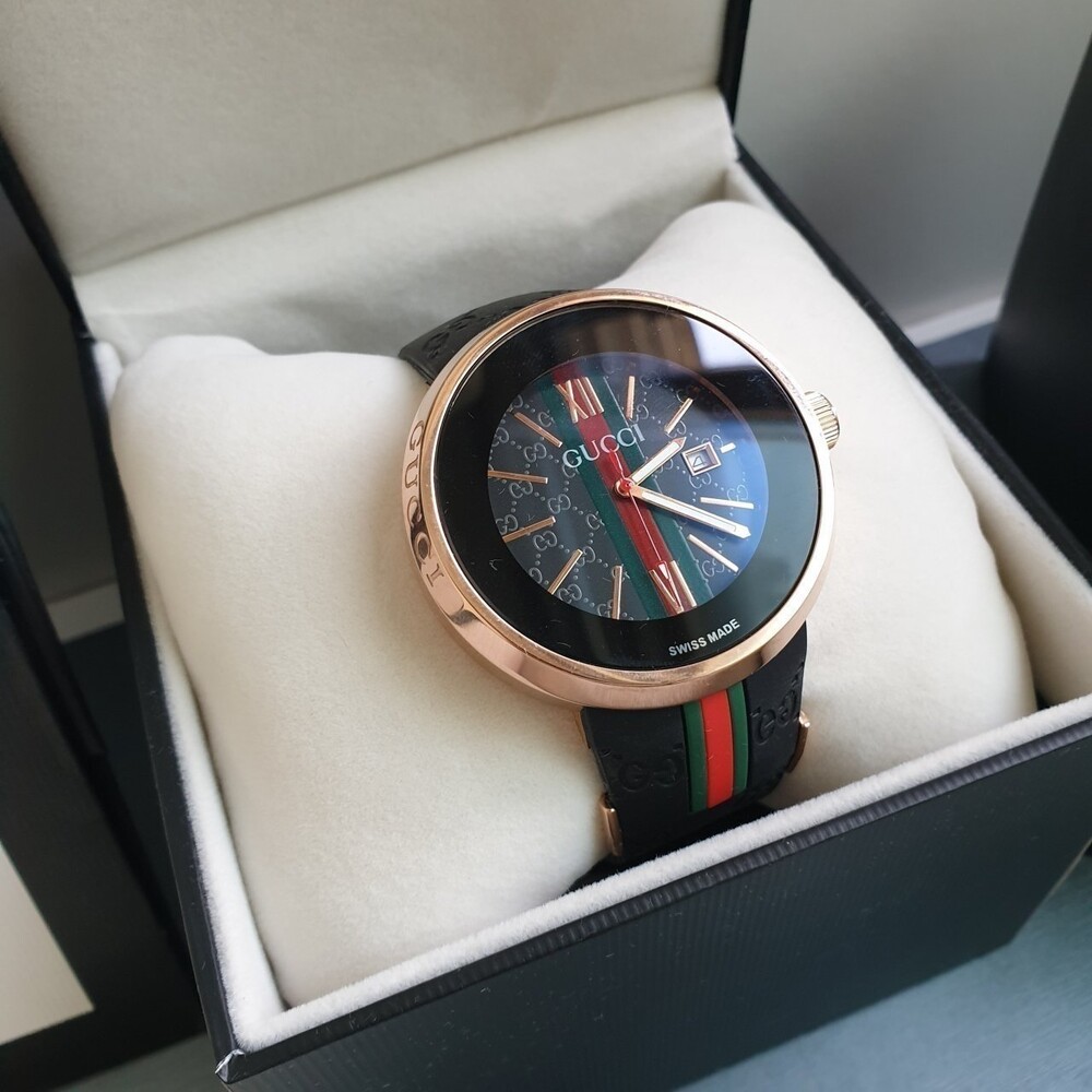 구찌 삼선 금장 블랙 러버밴드 시계 남여공용(1컬러)