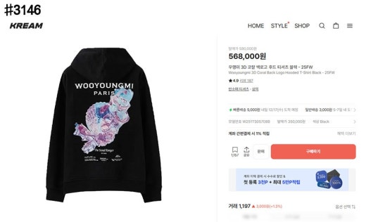 우영미 3D 코랄 백로고 후드 티셔츠 블랙 남여공용(1컬러)