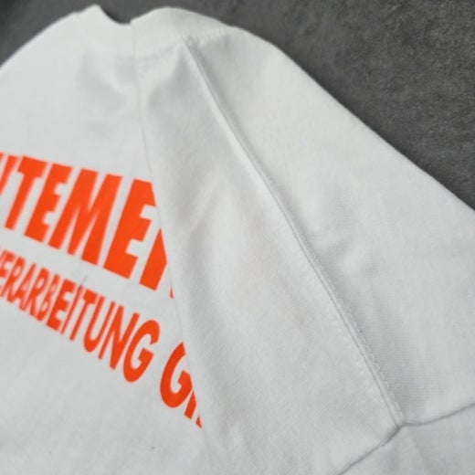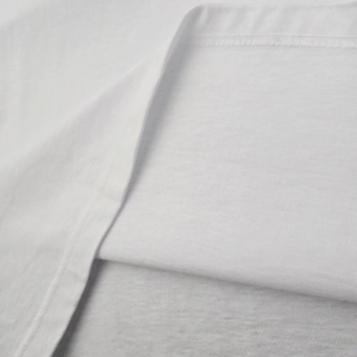 오버핏 20수 싱글 원단을 사용하여 제작하였고, 숄더 밑단 갈라삼봉처리, 넥라인 헤리테이프로 마감하여 퀄리티를 높여 세탁 or 착용시 축률을 최소화 시켰습니다.