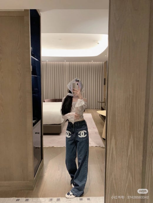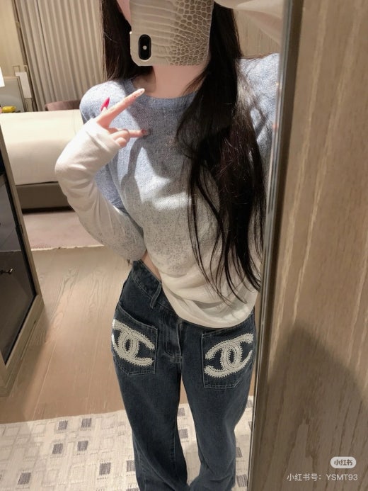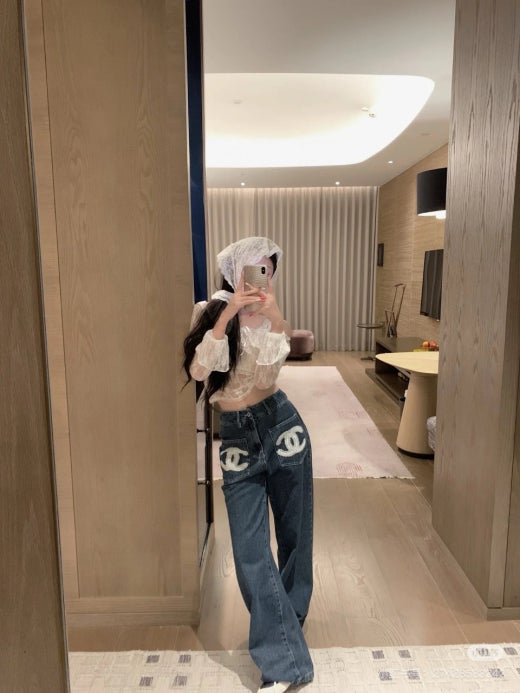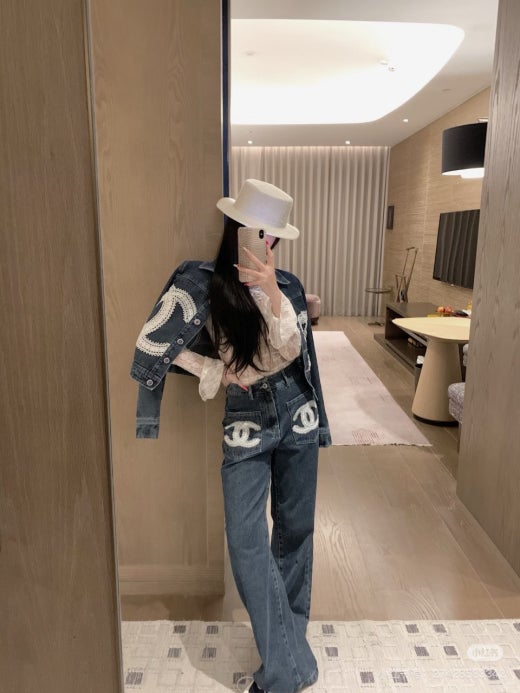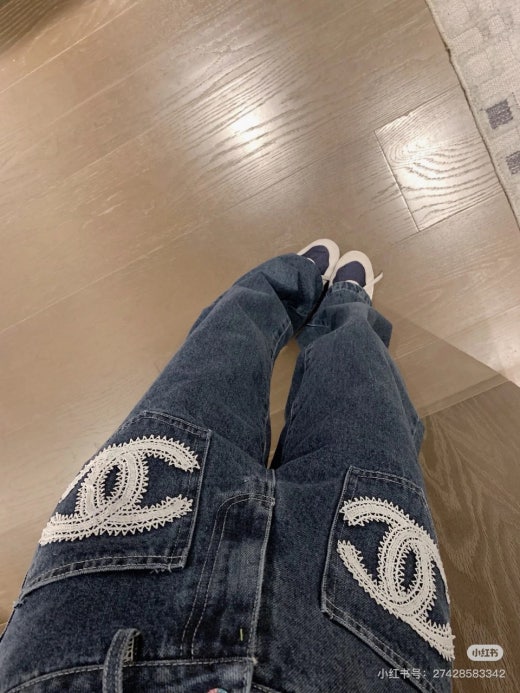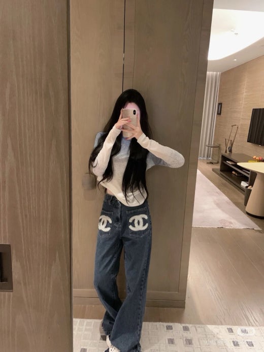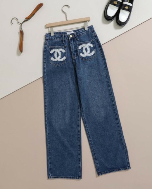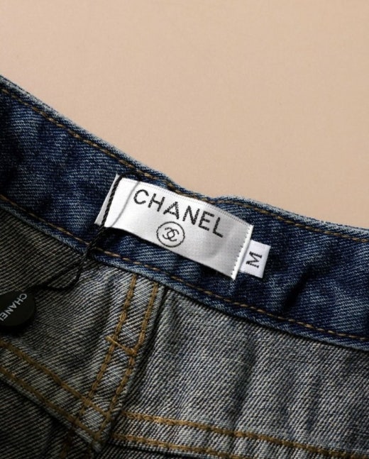 샤넬 앞포켓 CC로고 세미 와이드 진 진청 여성용(1컬러)