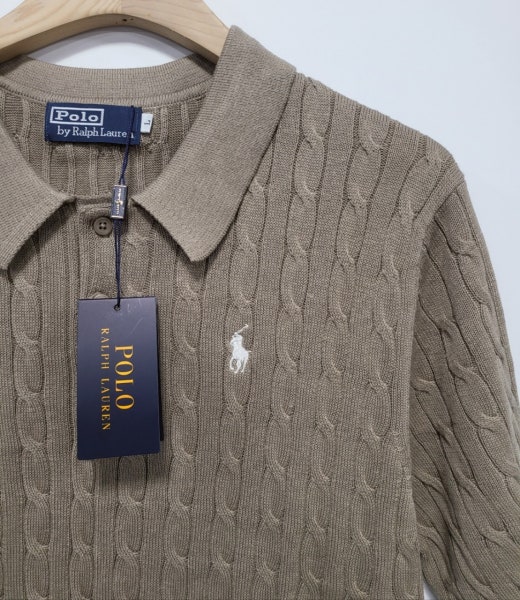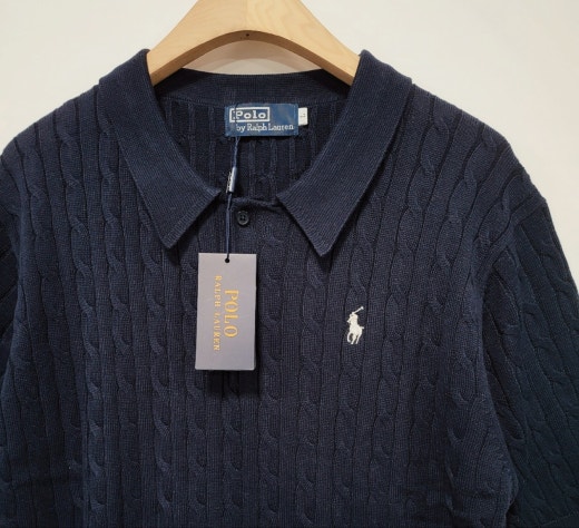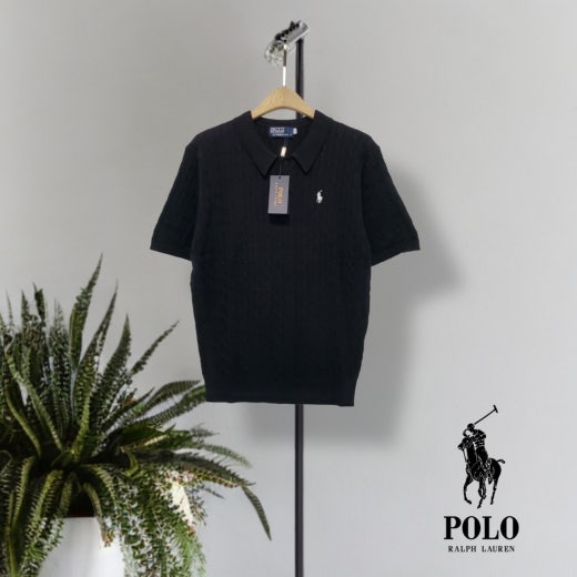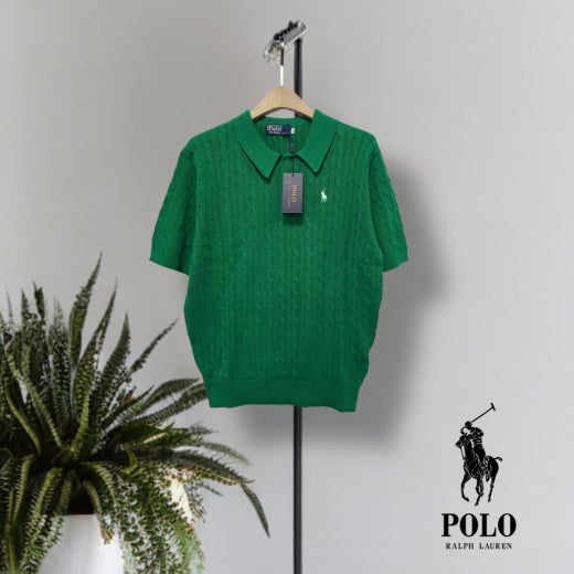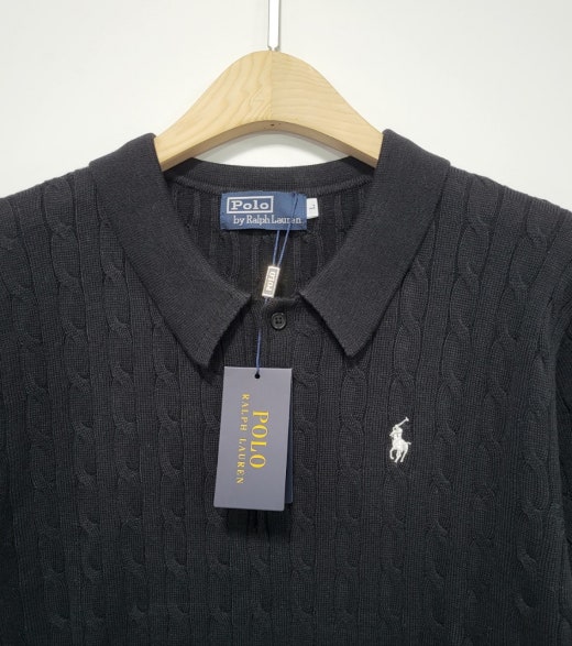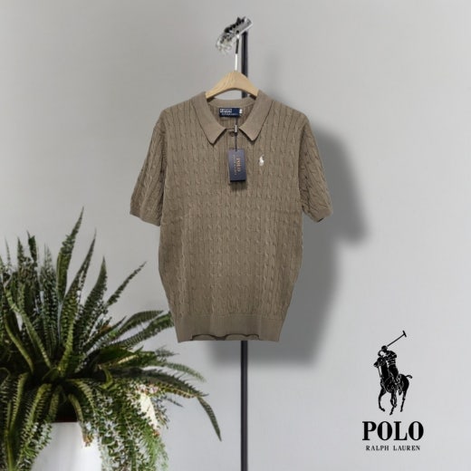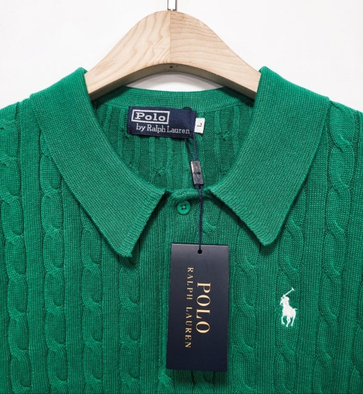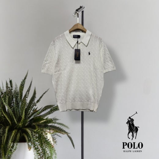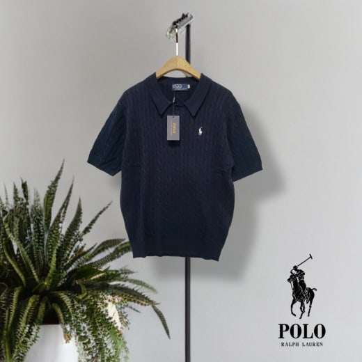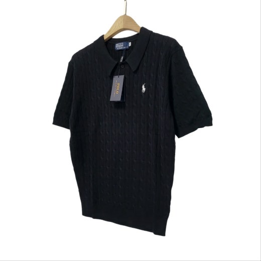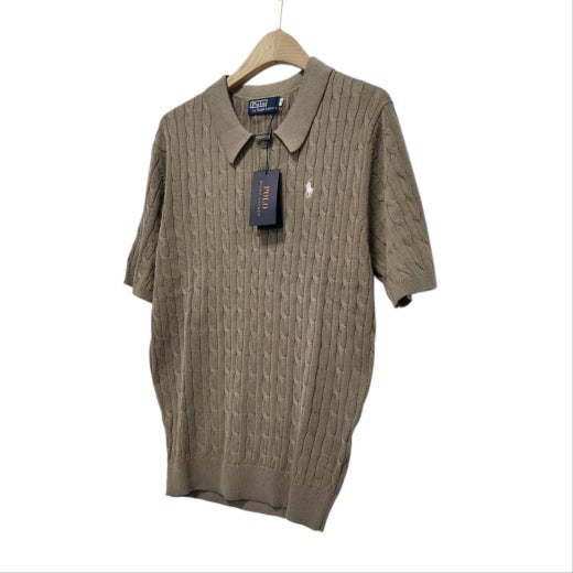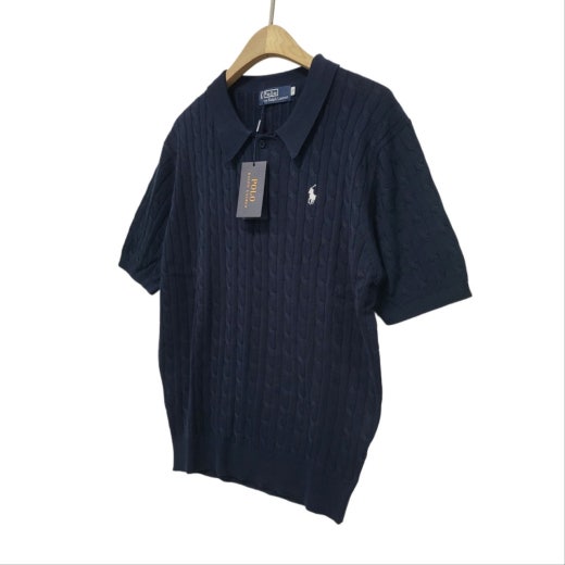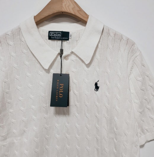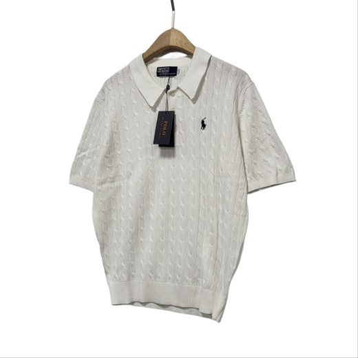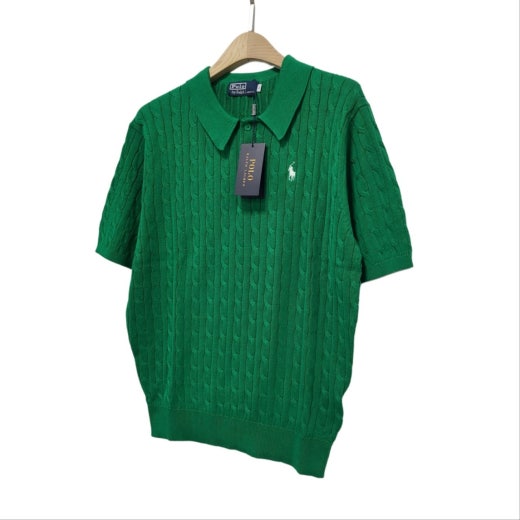 ☆고급스러운 케이블 편직 패턴의 여름용 쿨 카라넥 반팔 니트