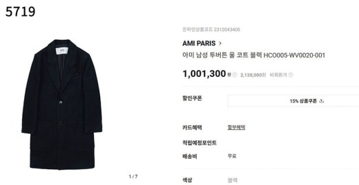 아미 투버튼 롱코트 블랙 남성용(1컬러)