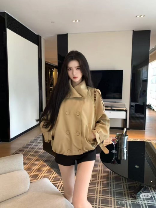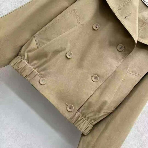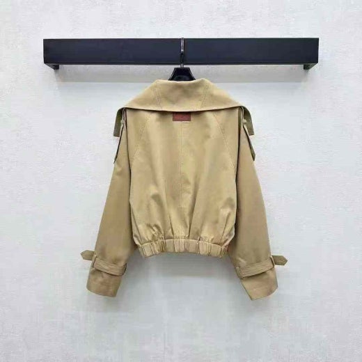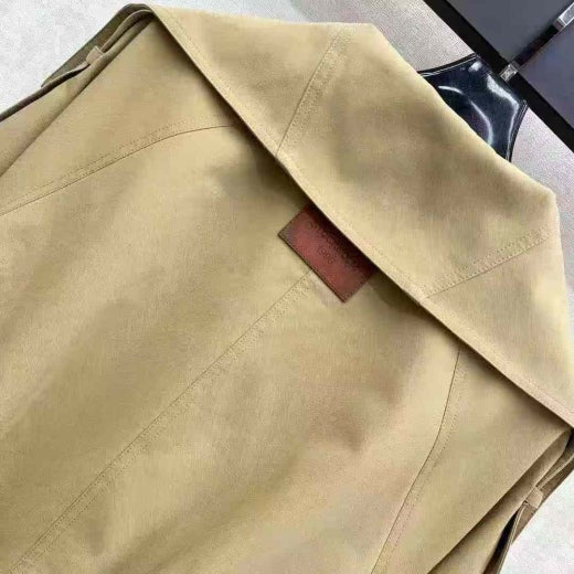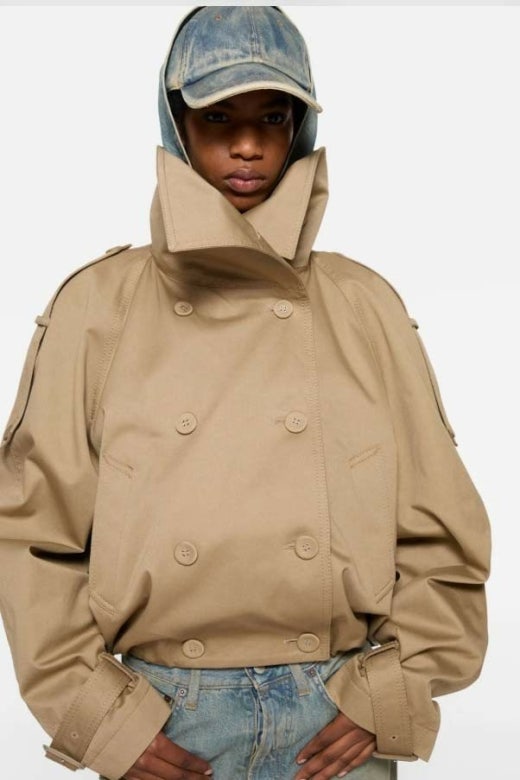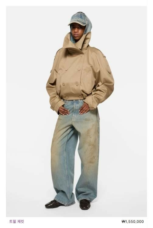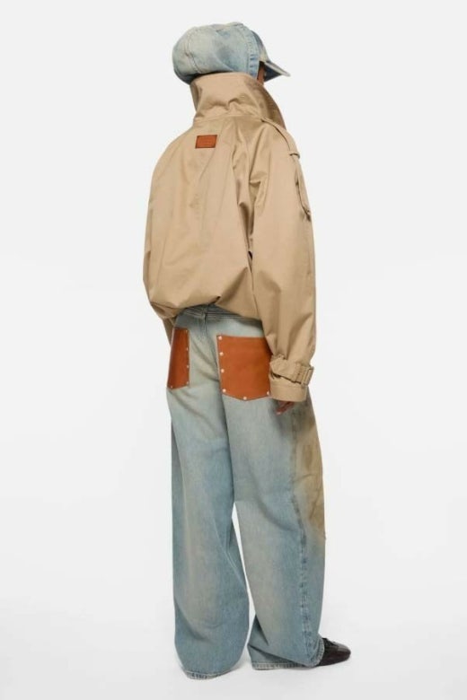 과장된 넥라인과 아래 밑단의 플리츠 디테일이 특징입니다. 어깨의 트렌치 스타일 탭과 소맷단의 벨트 디테일을 더했습니다. 뒷면 넥라인에 가죽 로고 패치로 완성했습니다. 허리 아래까지 내려오는 길이의 릴랙스핏으로 디자인했습니다.