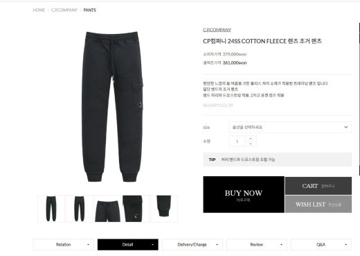CP컴퍼니 COOTTON FLEECE 렌즈 조거팬츠 남성용(2컬러)
