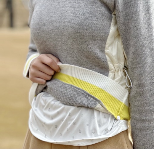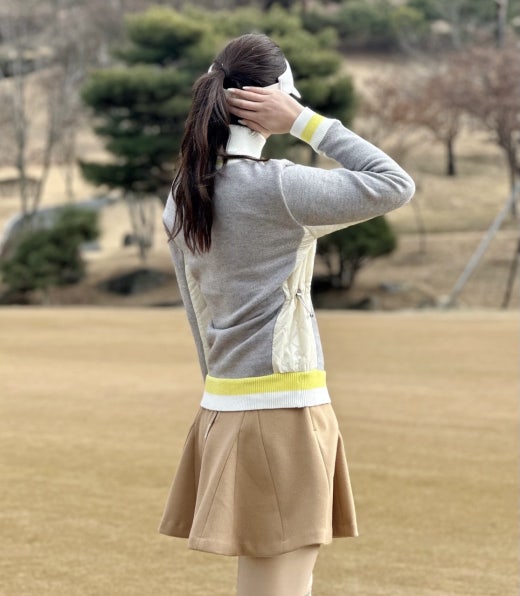 ➡️ 탈부착 가능한 방풍 하이브리드 반집 이너와 고급스러운 V넥 우븐 하이브리드 스웨터로 활용도가 높은 제품.