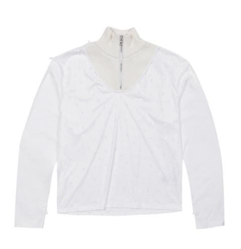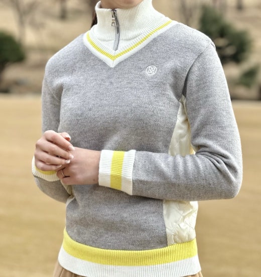 ➡️ 하프집 우븐 하이브리드 스웨터
