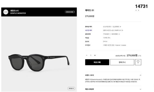 젠틀몬스터 'JADE' 선글라스 블랙 남여공용(1컬러)