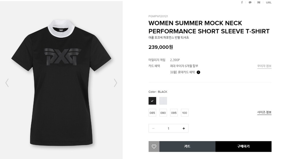 PXG 프리미엄 매.장.판 여름 모크넥 퍼포먼스 반팔 티셔츠 여성용(2컬러)