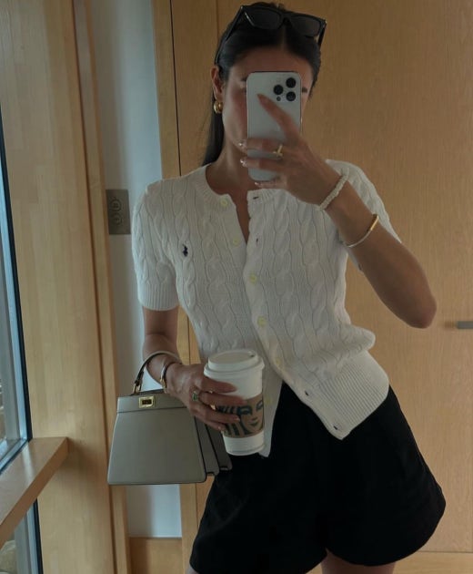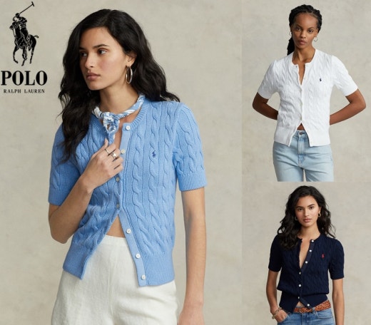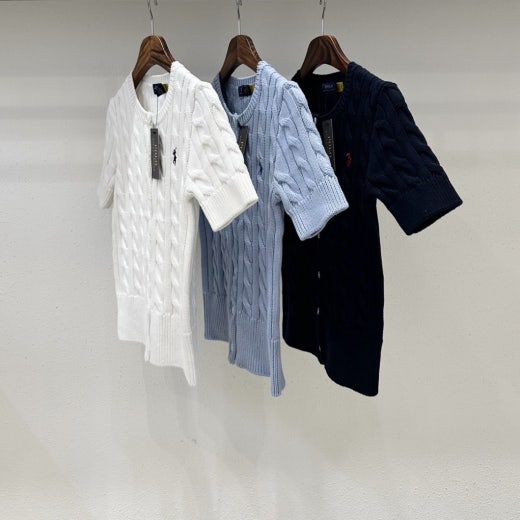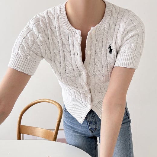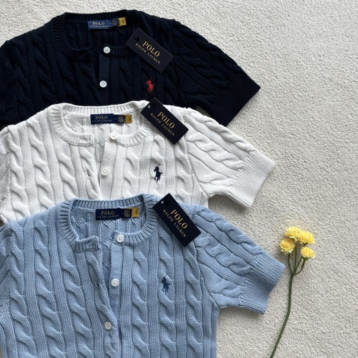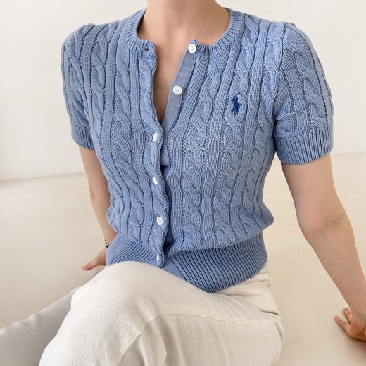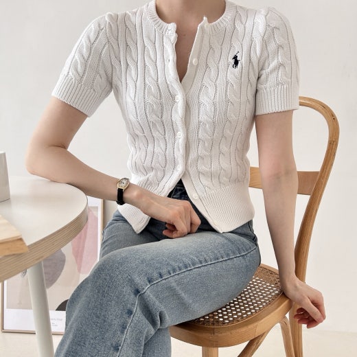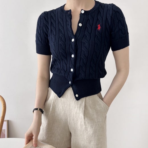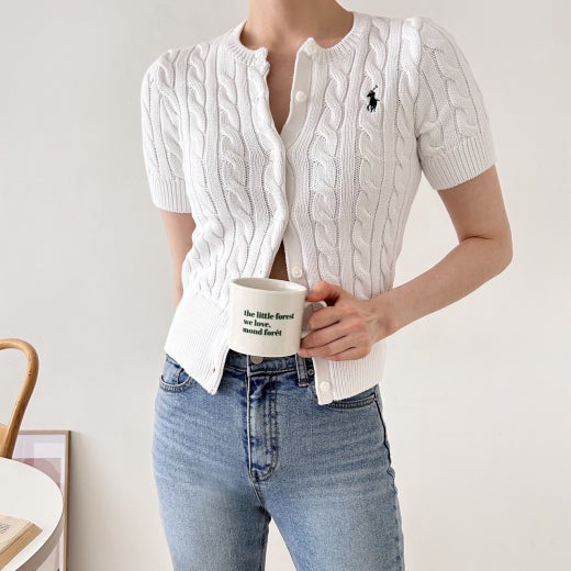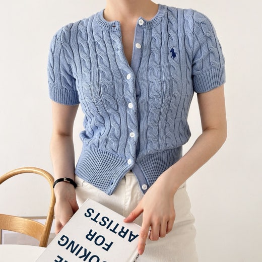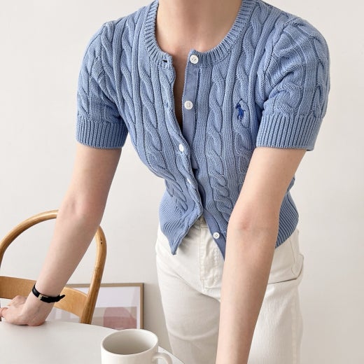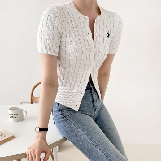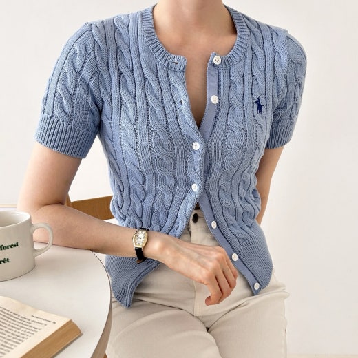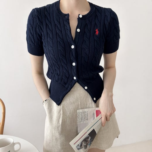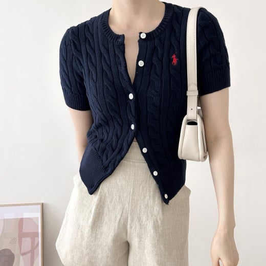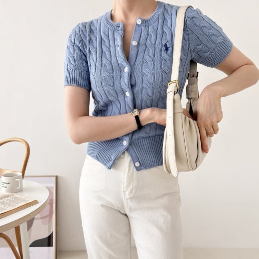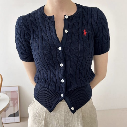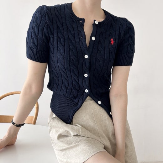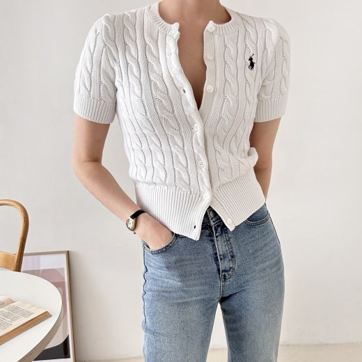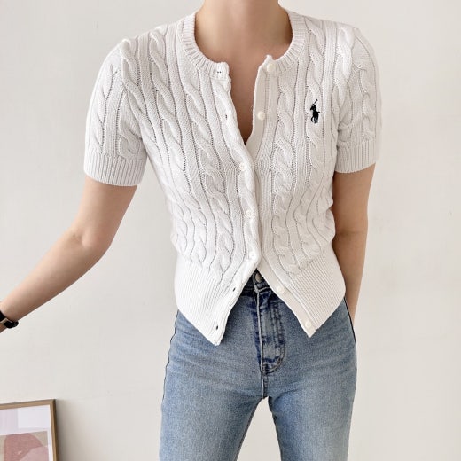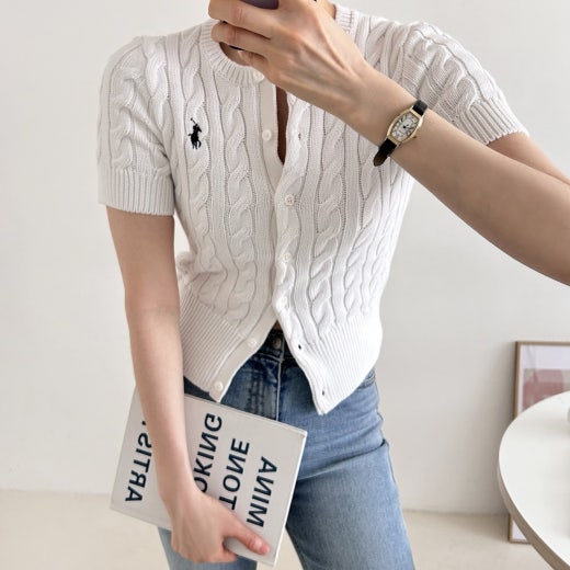 폴로 케이블 니트 반팔 가디건 여성용(3컬러)