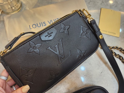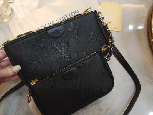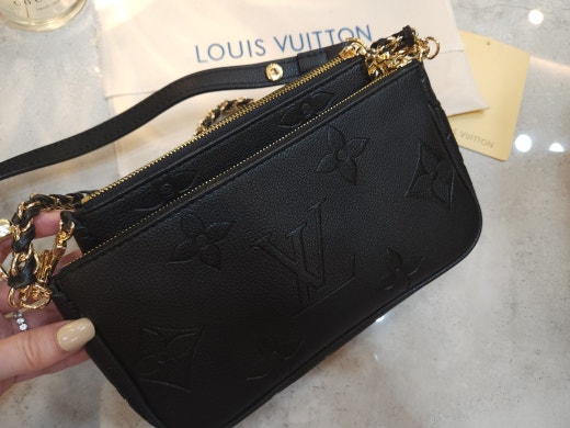 【기 타】 모노그램 언플란트 가죽으로 1개의 가방으로 2개의 스타일을 즐길 수 있는 디자인에 블랙에 골드 매치로 아주 깔끔하고 고급스러움과 실용성을 다 갖췄어요 특히 체인이 트위스트식 가죽매치로 포인트 제대로 활용할수있으며 양면에 양각으로 새겨진 모노그램 패턴이 예쁘게 잘 어울려요