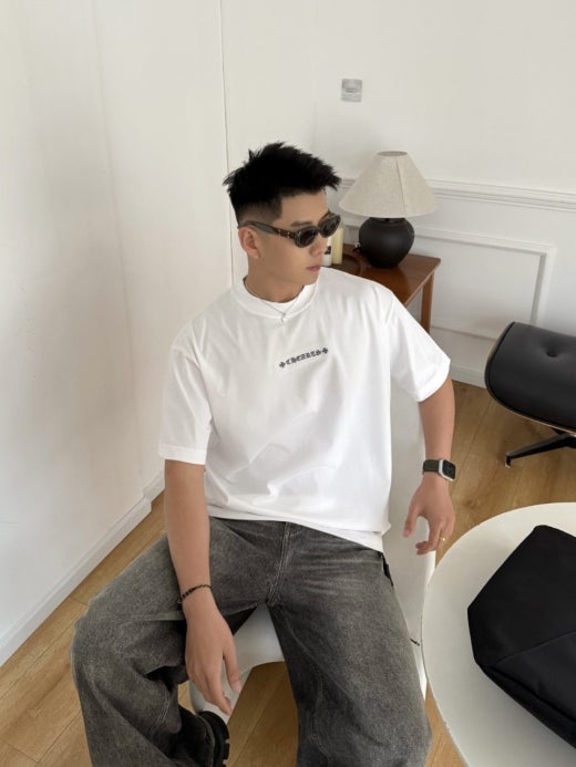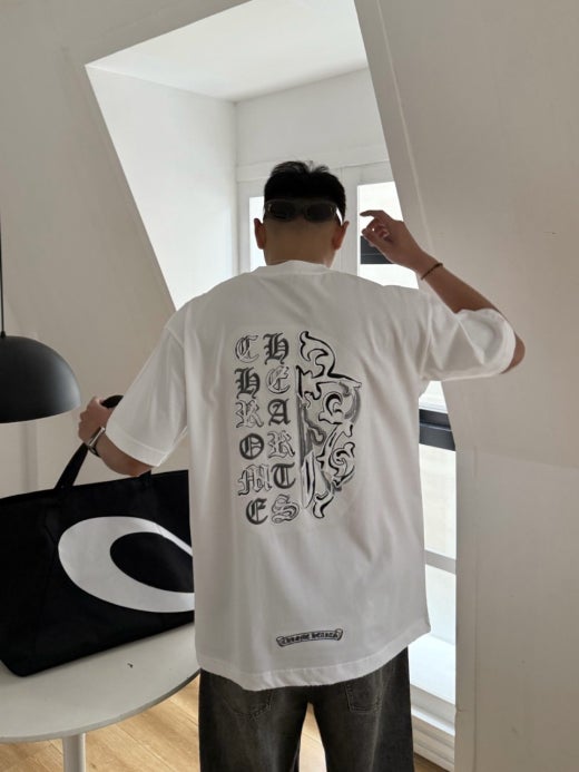 크롬하츠 로고자수 반팔 티셔츠 화이트 남여공용(1컬러)