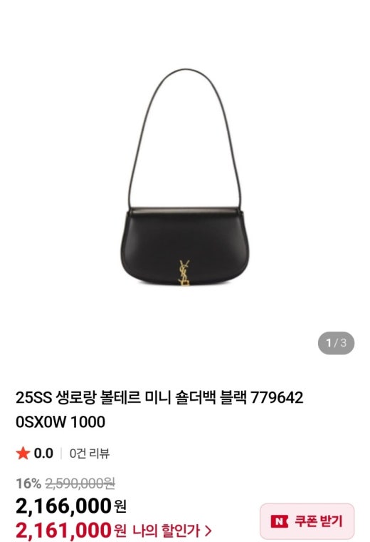생로랑 볼테르 가죽 미니 숄더 백 블랙 여성용(1컬러)