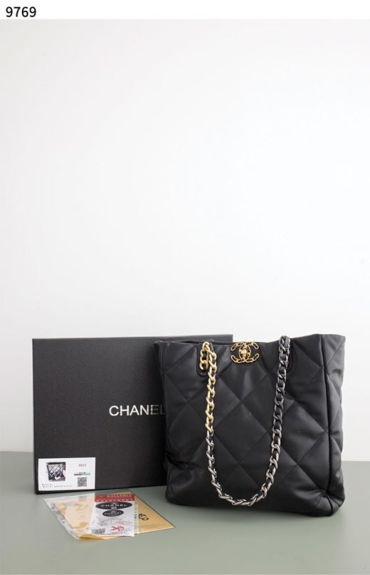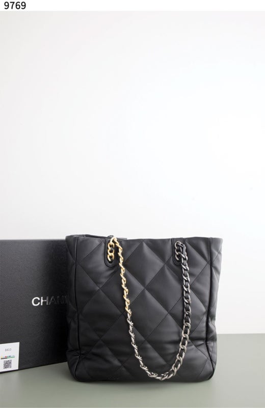 샤넬 Shopping Bag Shiny Lambskin & Gold Black 블랙 여성용(1컬러)
