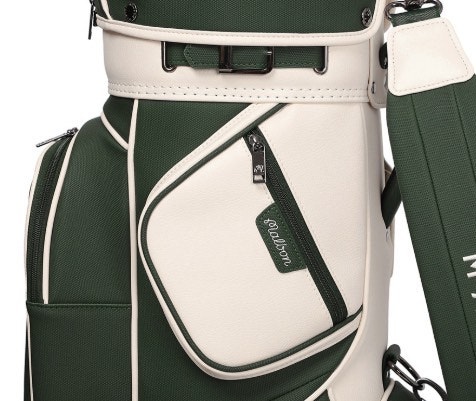 ➡️ 캔버스 느낌의 합성 피혁 소재를 사용한 트롤리 캐디백 입니다.