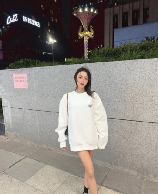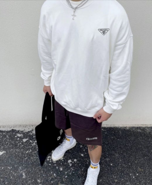 프라다 디테일 맨투맨 화이트 남여공용(1컬러)