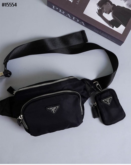 프라다 리나일론 삼각 로고 사피아노 레더 벨트 백 블랙 남여공용(1컬러)