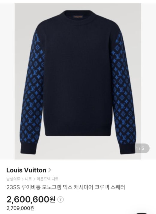 루이비통 모노그램 믹스 크루넥 양모라운드 니트 블랙 남성용(1컬러)