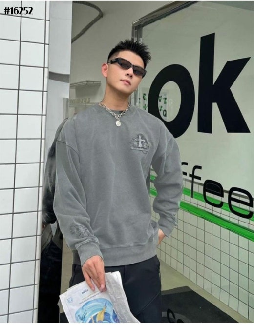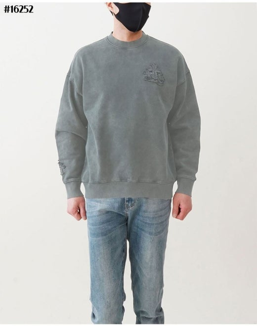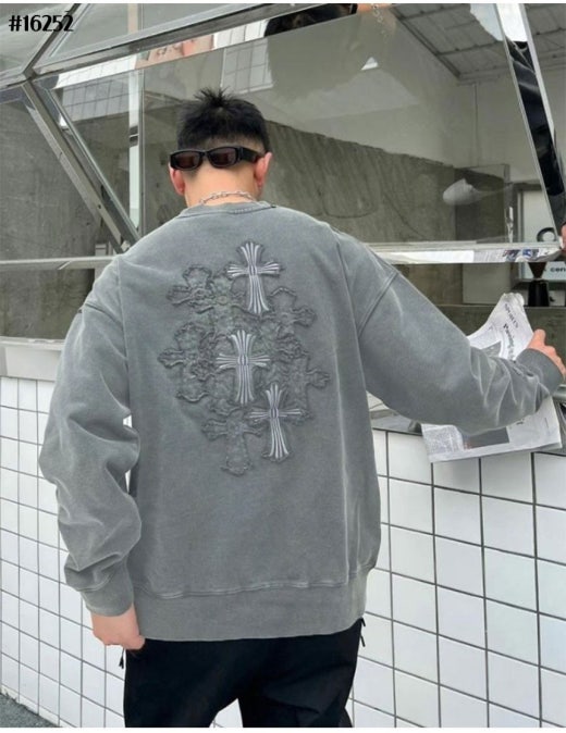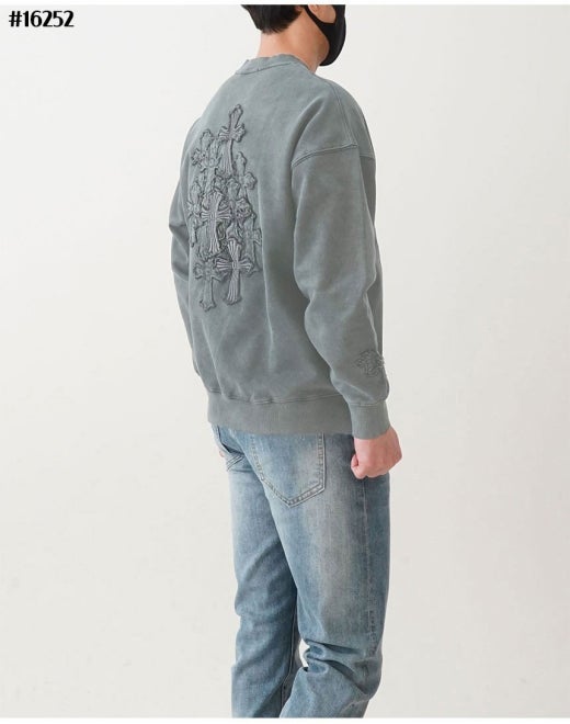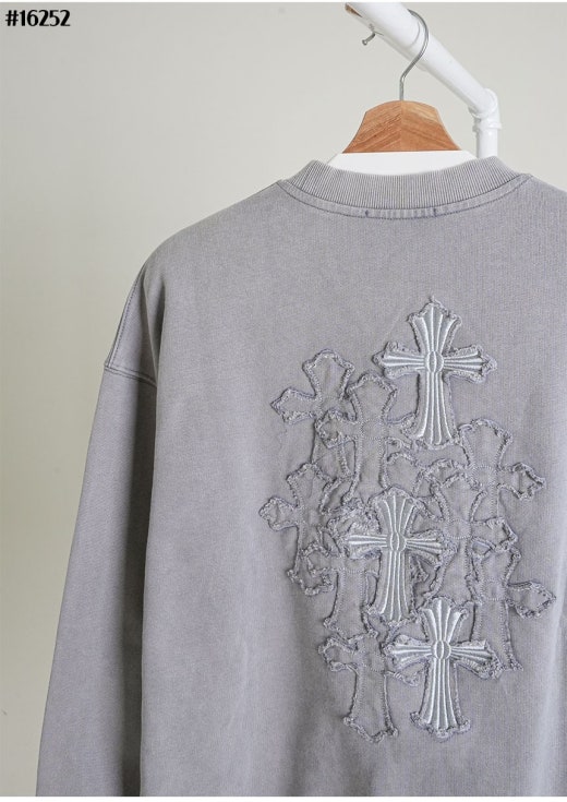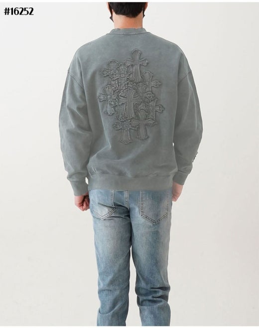 크롬하츠 세메터리 피그먼트 빈티지 워싱 맨투맨 라이트그레이 남성용(1컬러)