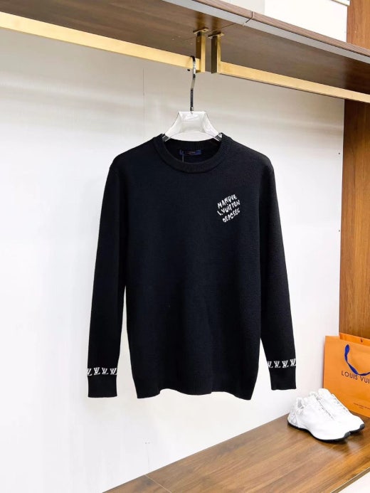 루이비통 슬리브 자수포인트 크루넥 울니트 블랙 남성용(1컬러)