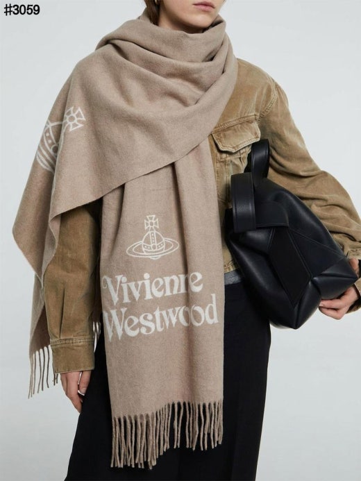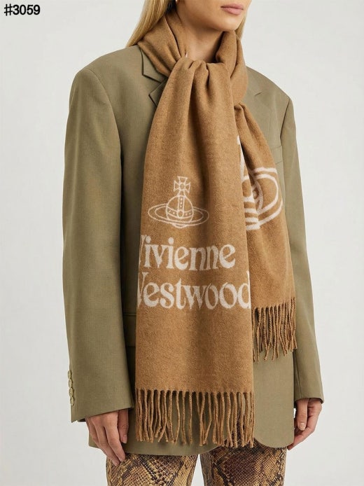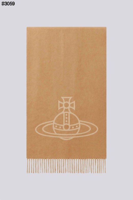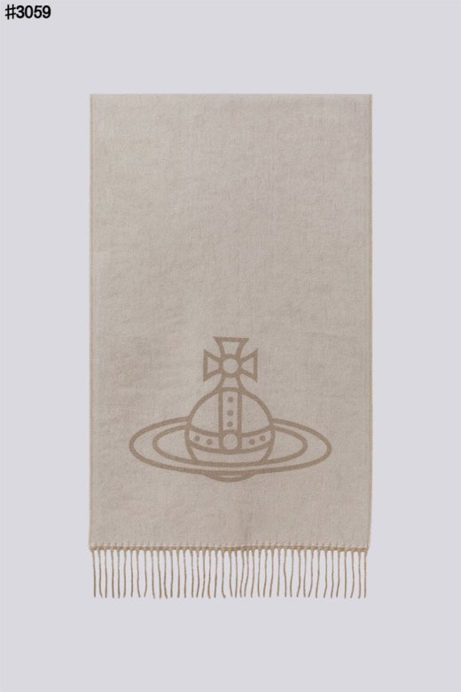 비비안웨스트우드 투 사이드 싱글 오브 울 자카드 태슬 머플러 남여공용(2컬러)